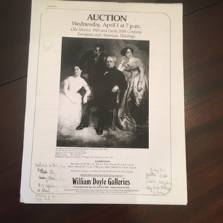Thanks to Lynda (a descendant of George Healy’s), I have some precious photos of memorabilia connected to the Thorn family portrait. This is the flyer for the auction when the painting was sold sixty years ago. I had tried to track this down through the auction house, but they told me they had lost their old paper records.