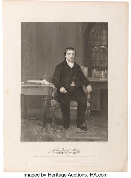 This was for sale some time ago. The auctioneers stated that the “Letter is accompanied by an engraving of Astor based on a painting by Alonzo Chappel and published by Johnson, Fry & Company, New York, 1864.”